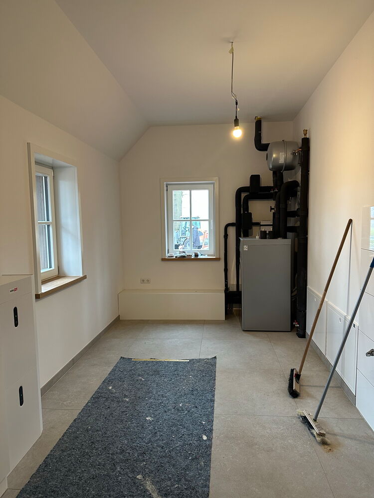 Im Erdgeschoss und im Obergeschoss befindet sich jeweils ein modernes Tageslichtbad mit ebenerdiger Dusche. Der große Hauswirtschaftsraum neben dem Eingang ist praktisch angeordnet und bietet Platz für Waschmaschine, Trockner und zusätzliche Lagerung. Vier weitere Zimmer eignen sich flexibel als Schlaf-, Kinder- oder Arbeitszimmer.